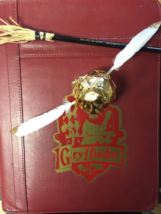 As we end the presentation, we give our participants—educators from across the state of North Carolina—the choice of going to the official Pottermore site to find their own Hogwarts house or Patronus, or making some of the crafts we make with our students. The glee in the room is palpable; how many presentations have you been to where you can make a pencil broom, a golden Snitch, a feather pen, a wand, a winged key, an ornament with your house colors, or eat a homemade chocolate frog?