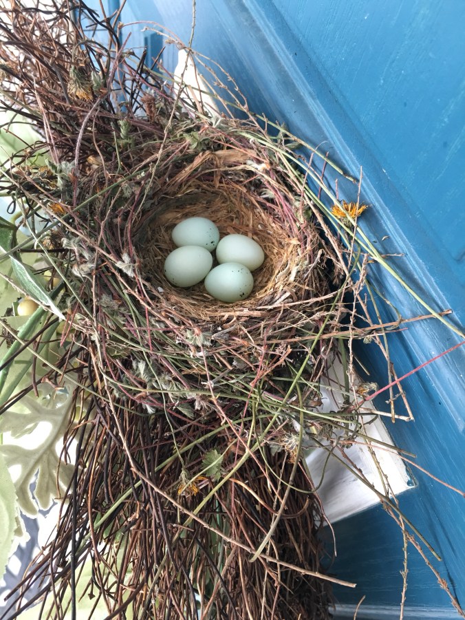 And then I worried even more: Is the wreath secure enough? How many more eggs will there be? Will they—will the babies—be safe?