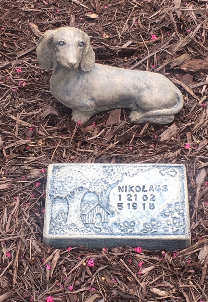 He’d chosen this spot months ago as he watched his beloved dog wasting away, day by day. And so we laid Nik to rest here in the shade of the crape myrtle our family planted when we first moved to our home. Nik was a year old then. Cadillac Man was five, soon to finish kindergarten; he’s entering his last year of college now.