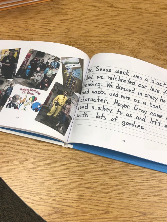 One first grade class published a book of their animal research, with a back section recounting highlights of their year together. These books were presented to families at Literacy Lunch.