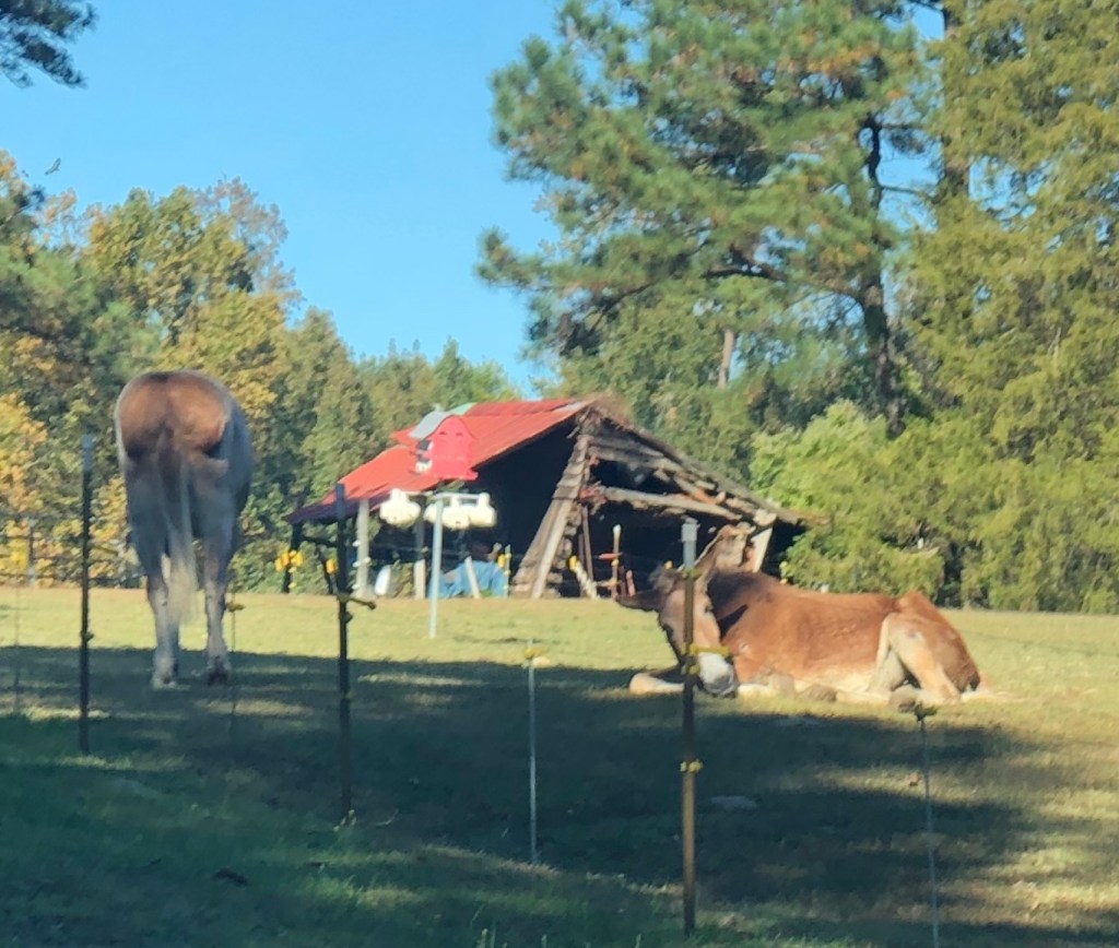 They do not know how they stir my soul when I drive by their pasture, or how the sight of them makes me feel like I just might be, for a few seconds, back in time. They are a brief glimpse of rural life as it was in the 1930s. Or 1920s. Or even long before. They are remnants of a time when man lived closer to the earth and life was hard but somehow better. The mules are reminders of my grandfather; I’ve rhapsodized about that before, having been a little girl who grew up in the city longing for the countryside that my grandfather loved and the past that he lived. All because of the stories. Granddaddy said, “Nobody had any money but everybody looked after each other and we were happy.”
