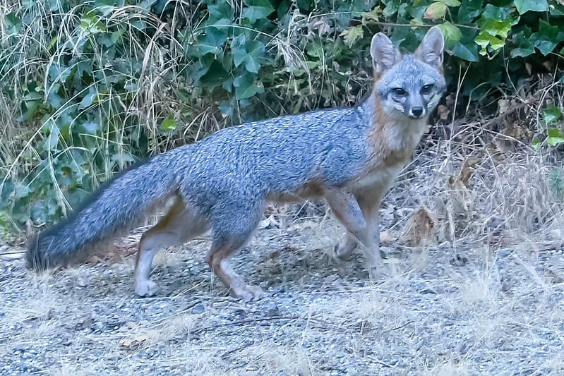 I wonder where our enigmatic gray fox was going on its jaunt along the woodland road just before dusk…and how many more of its kind are about, in the secret places…