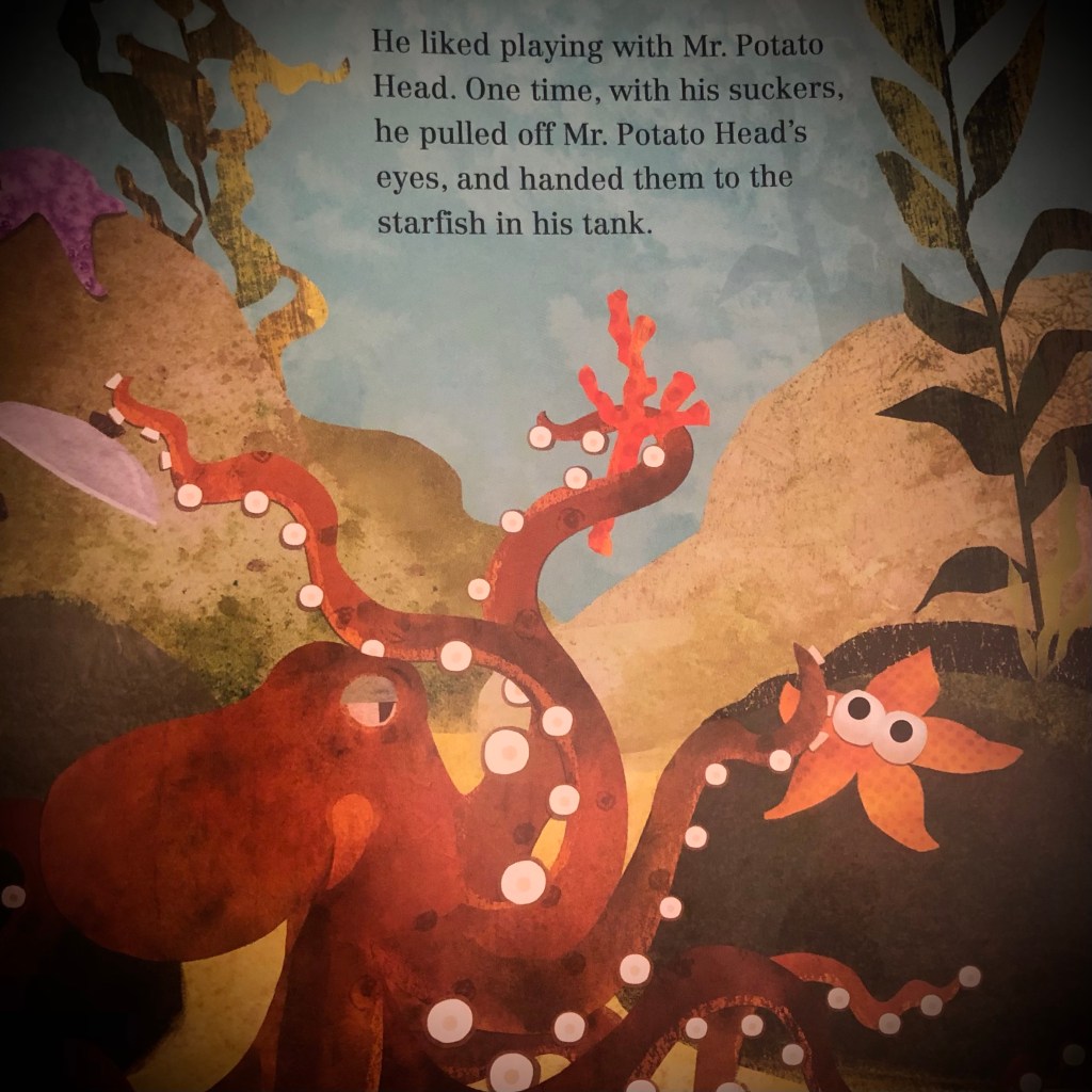 I am in awe of octopuses. Inky’s story is etched on my heart. There’s something so poignant to me in his giving Mr. Potato Head’s eyes to the starfish.