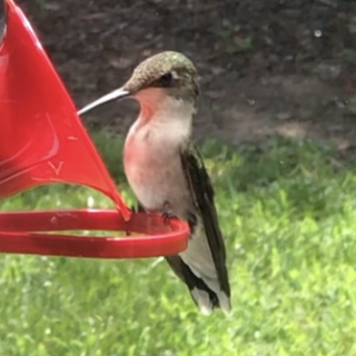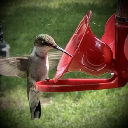 There’s a lot I didn’t know about hummingbirds. They’re curious. They watch me through the window as I’m watching them. I read that they’re highly intelligent; they learn to recognize the person who feeds them and may even remind this person if their sugar water is running low. They are not social, not flock birds. When they migrate to Mexico in the fall, they go it alone. Why does this pull so terribly on my heartstrings? I cannot shake the image in my mind of this tiniest of birds flying so far by itself.