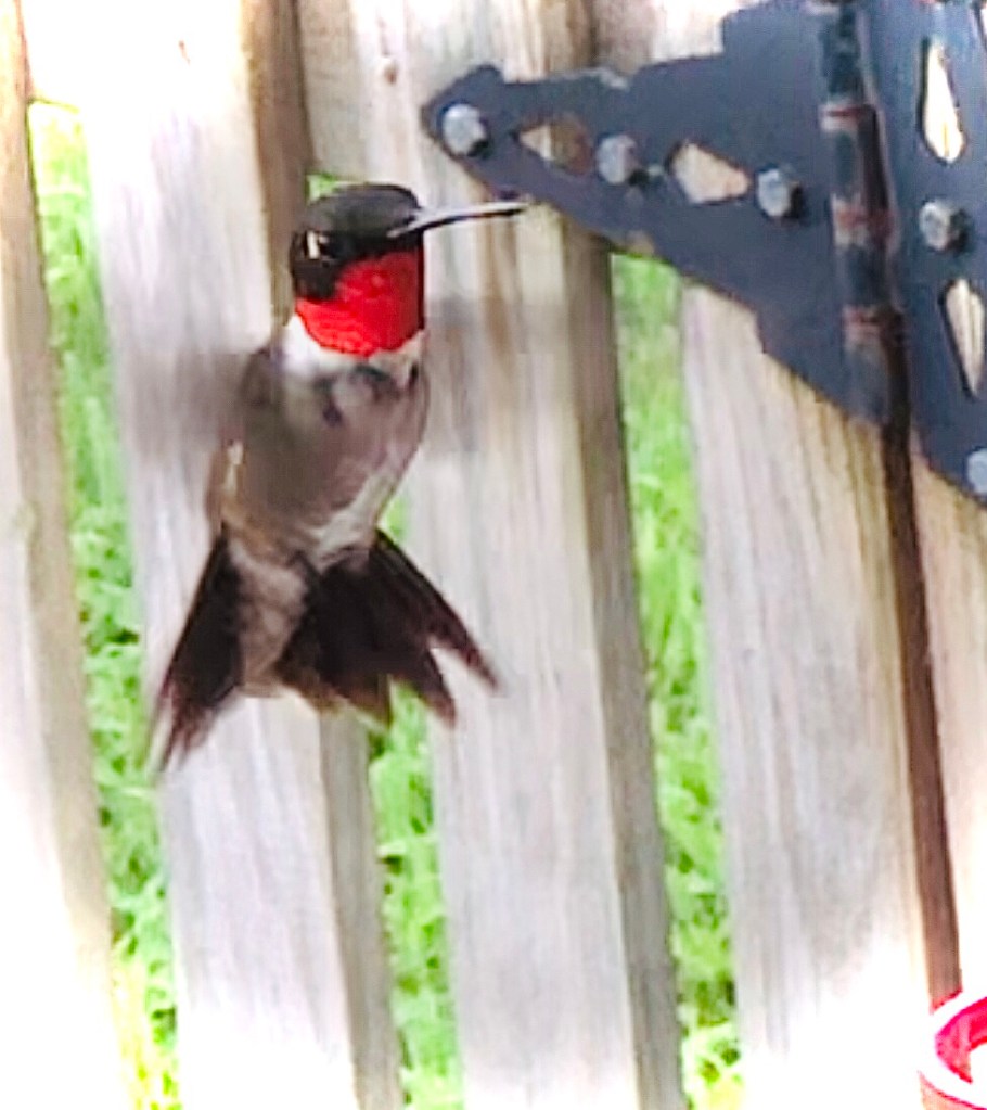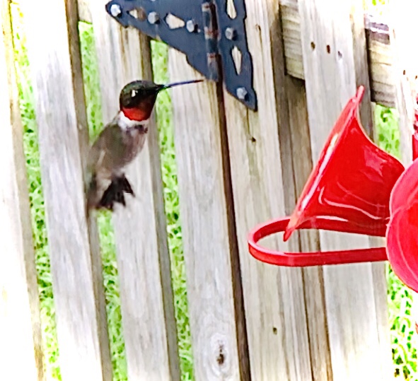 The next day another female arrived. I watched the two of them competing for turns at the feeder. All day they chase each other away, each still managing to land and feed for the few seconds it takes to sate a creature so tiny. One tentative male finally showed up today, his ruby throat resplendent in the sunlight. I haven’t managed to get a photo of him yet. I hope he’ll return, despite these territorial females.