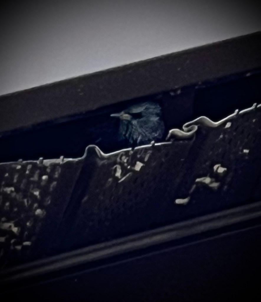 The house wren, fiercely territorial, belongs to the family troglodytes which means “hole dweller”—this hole happens to be, fittingly, on a Dunkin’ Donuts building.