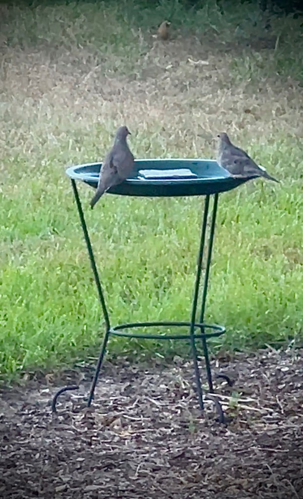 They adore my birdbath. Sometimes three of them cram in together. I think of the ancient Roman Baths, a place to gather and socialize, to share the events of the day while washing the grime away.
