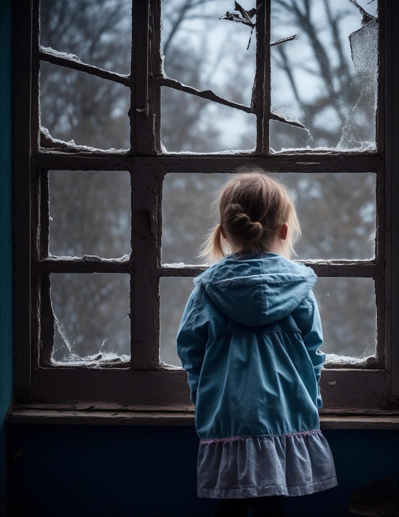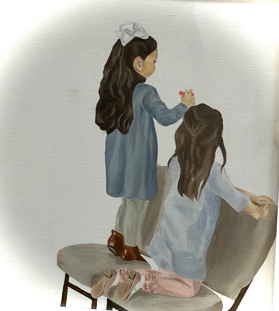 There were good things about the house. A Big Bathroom and a Little Bathroom. Having two seemed luxurious to me, a child accustomed to apartments. Cloud-like swirls on the ceiling that my mother said were made by twisting a broom in the plaster while it was wet. A huge picture window in the living room, through which I could see a very tall tree behind the neighbors’ house. To me, the tiptop of the trunk appeared to be a lady sitting and gazing across the earth like some kind of woodland princess. Day in and day out, she sat there atop of her tall tree-throne, a regal silhouette, never moving.