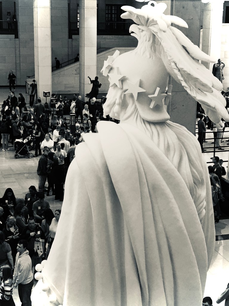 I photographed the Statue of Freedom in March 2018. She stands in the Capitol Visitor Center’s Emancipation Hall. This plaster version was the model for the bronze one atop the Capitol dome. Like a mythological warrior queen, she wears a helmet, bearing stars and the head of an eagle. While the eagle’s power and fierce majesty have led governments, empires, and regimes throughout history to adopt it as a symbol, it’s those long eagle feathers that captivate me. To Native Americans, they represent sacredness and healing. Think on that symbolism awhile.