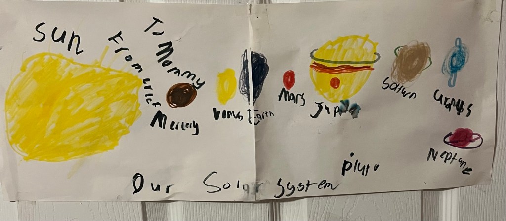 He texted right back: She’s so wound up. We have already been out to play. We made snow cream. Put sprinkles on it and ate it for breakfast.